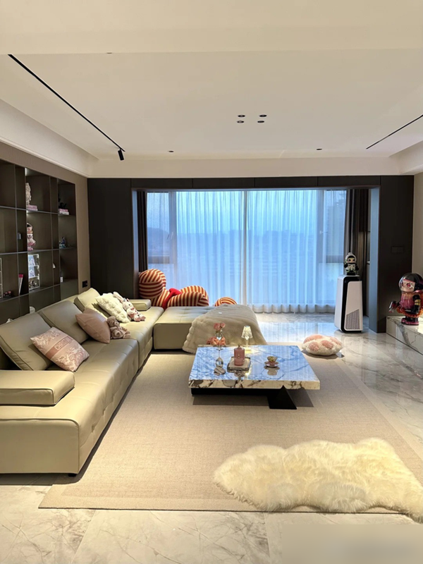 这位广东姑娘的清醒劲儿太对胃口——墙面刷大白漆,地面铺平价仿木砖,省下的钱全用在真皮沙发和实木家具上,每件都经得起摸、扛得住用。